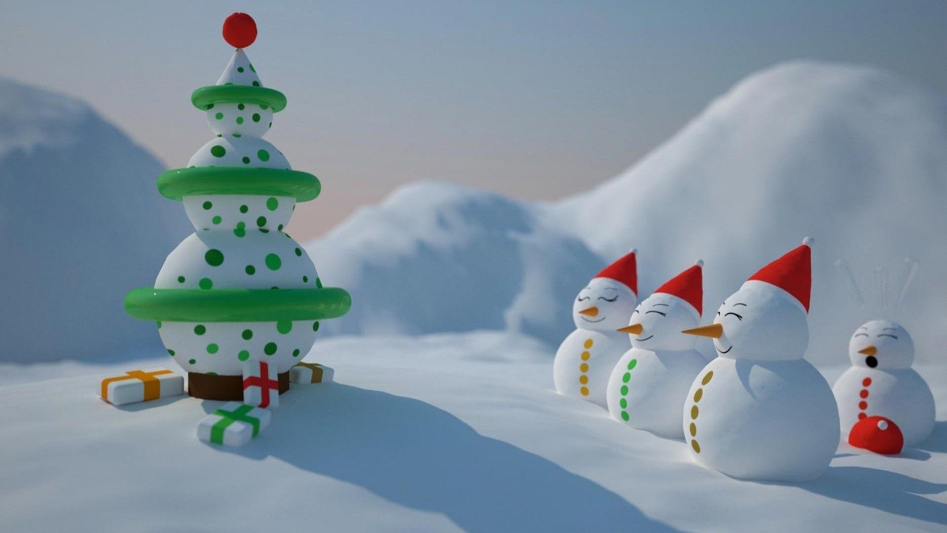 Скачать Снеговики смотрят на елку - 1920x1080 (1080p)