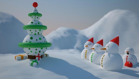 Скачать Снеговики смотрят на елку - 480x272 PSP