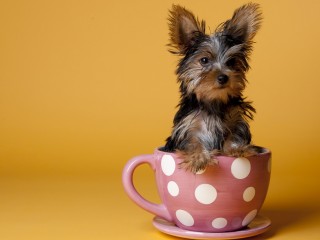 Собачка в чашке смешные обои - 320x240