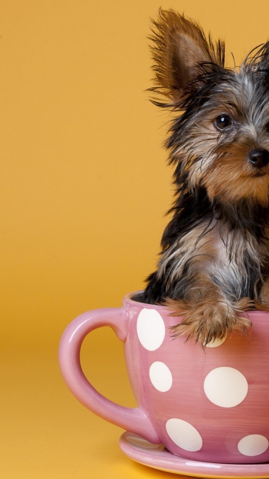 Собачка в чашке смешные обои - 540x960