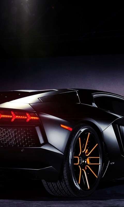 Стильный черный Ламборгини Авентадор - 480x800