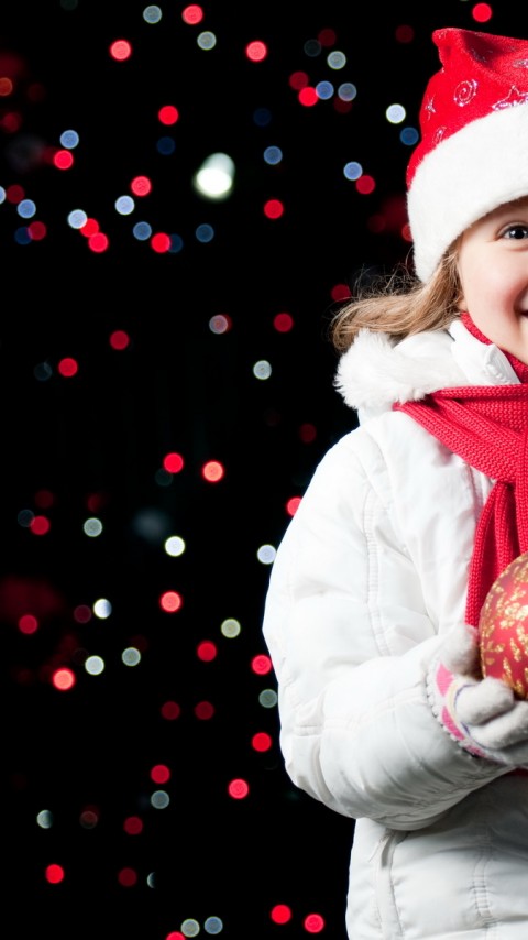 Улыбающаяся девочка с Новогодними игрушками - 480x854