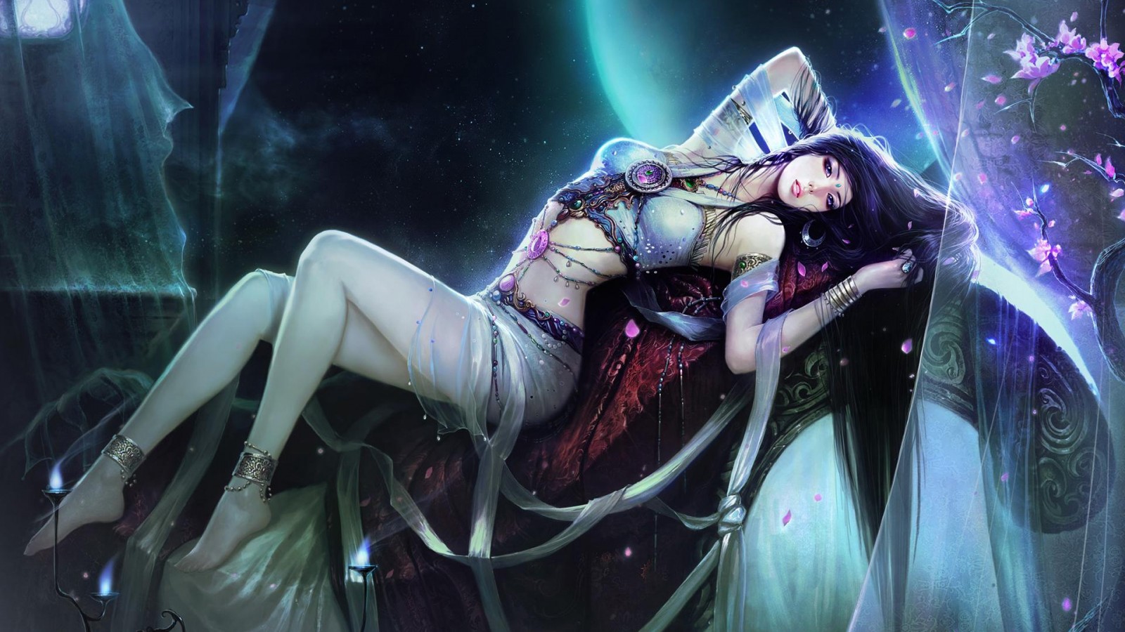 Фентази девушка на темном фоне - 1600x900