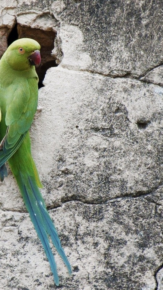 Фото попугая вида ожереловый Крамера сидящего на скале - 540x960