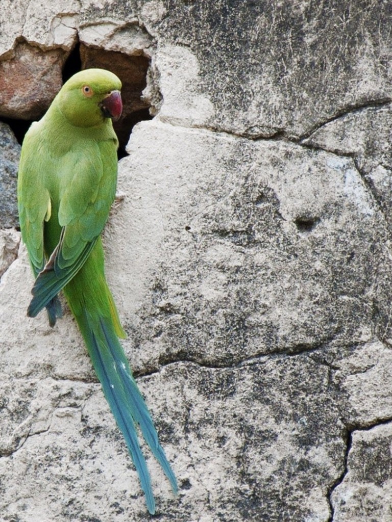 Фото попугая вида ожереловый Крамера сидящего на скале - Non-retina iPad