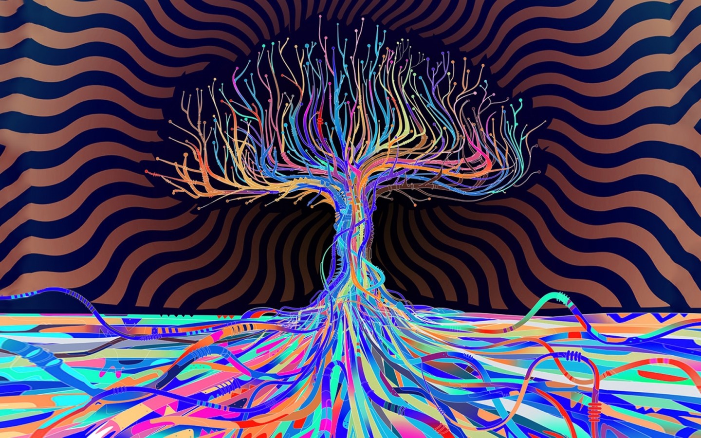 Широкоформатные обос с абстрактным разноцветным деревом - 1440x900