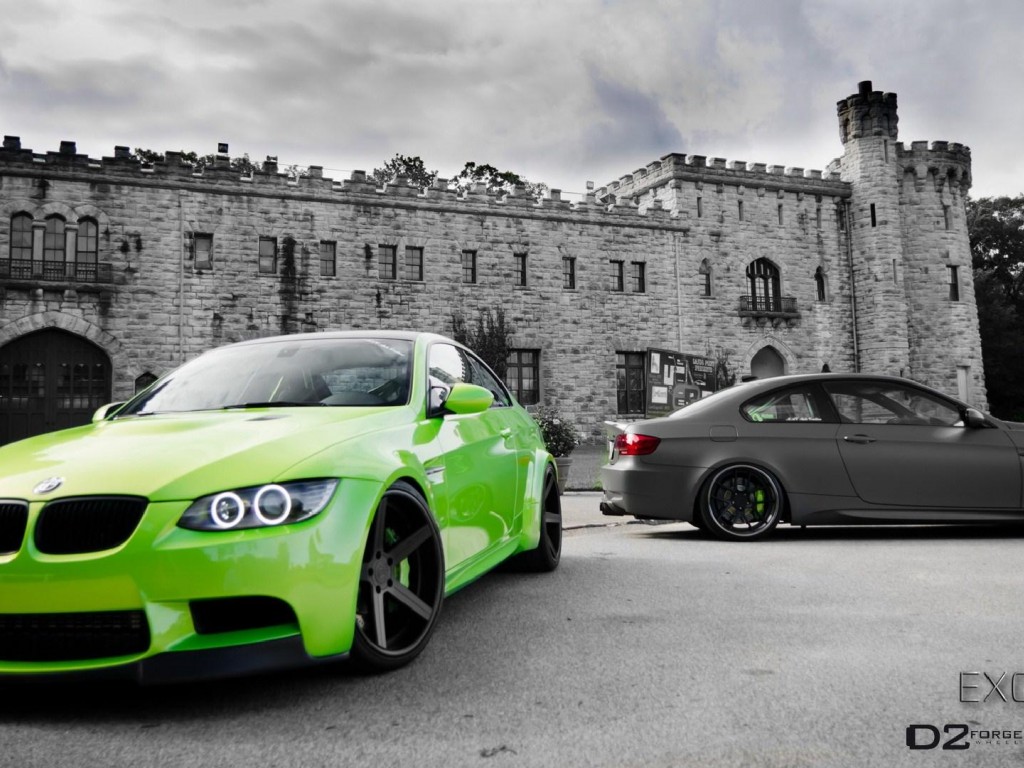 Ярко-зеленое и серое авто БМВ картинки на рабочий стол - 1024x768