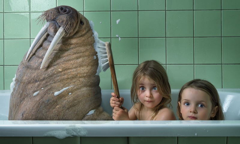 дети, морж, юмор, прикол обои на монитор - 800x480