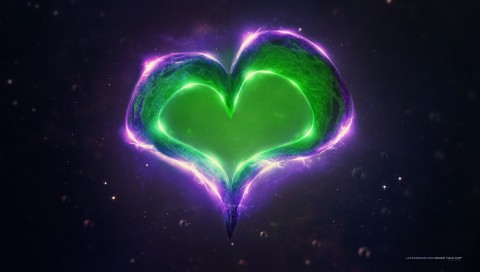 зеленое сердце, пурпурное сердце, фон, пузыри, сияние обои - 480x272 PSP