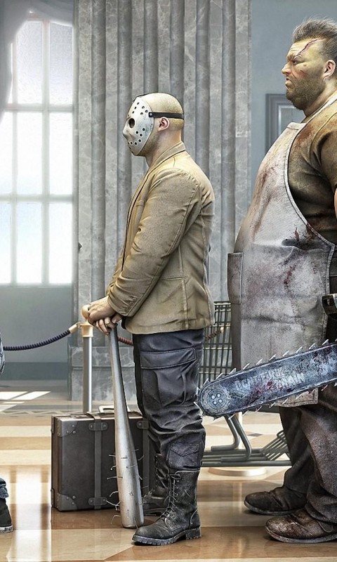 смешно грабители банка в ожидание ограбить стоят в очереди - 480x800