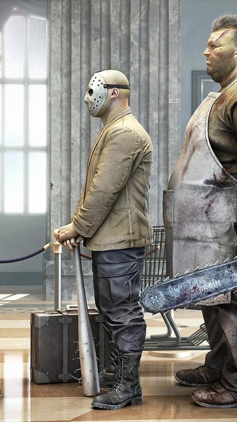 смешно грабители банка в ожидание ограбить стоят в очереди - 480x854