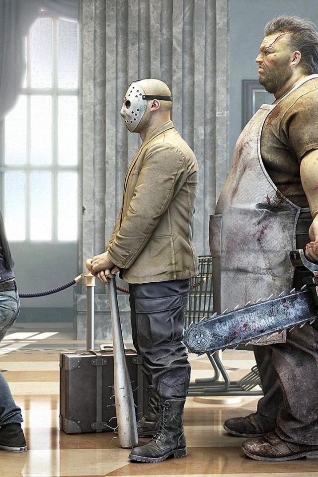 смешно грабители банка в ожидание ограбить стоят в очереди - iPhone 4/4S/iPod
