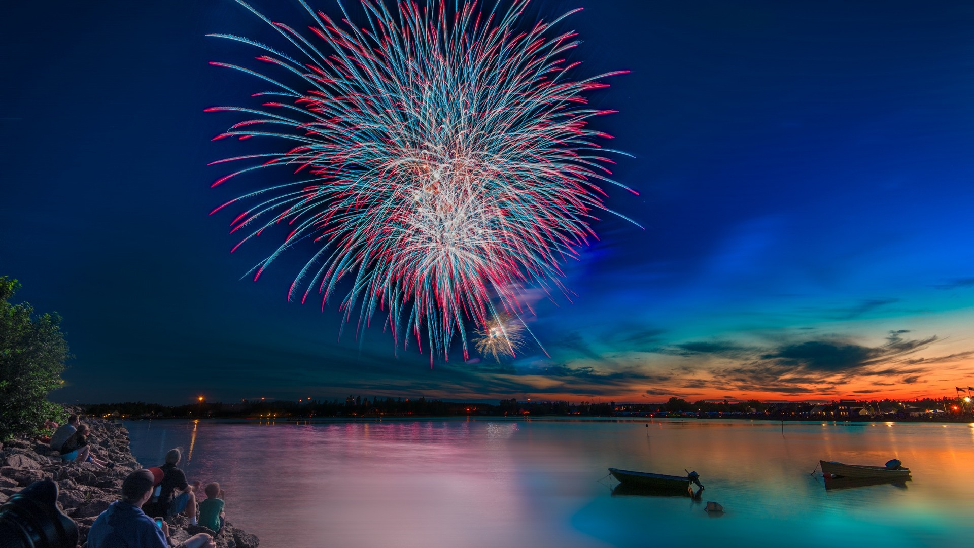 фейерверк, торжества, салют, ночь, море, набережная, праздник, вечер - 1920x1080 (1080p)
