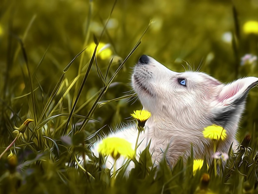 1920x1080, собака хаски, трава, цветок, настроения, изображения, голубые глаза, HD обои - 1024x768