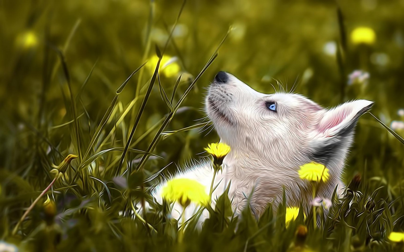 1920x1080, собака хаски, трава, цветок, настроения, изображения, голубые глаза, HD обои - 1680x1050