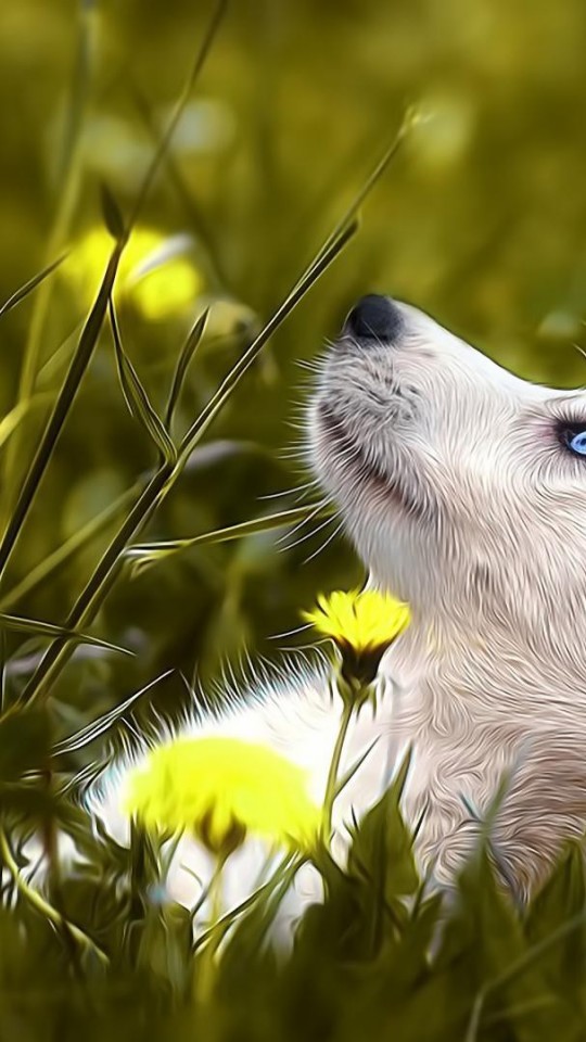 1920x1080, собака хаски, трава, цветок, настроения, изображения, голубые глаза, HD обои - 540x960
