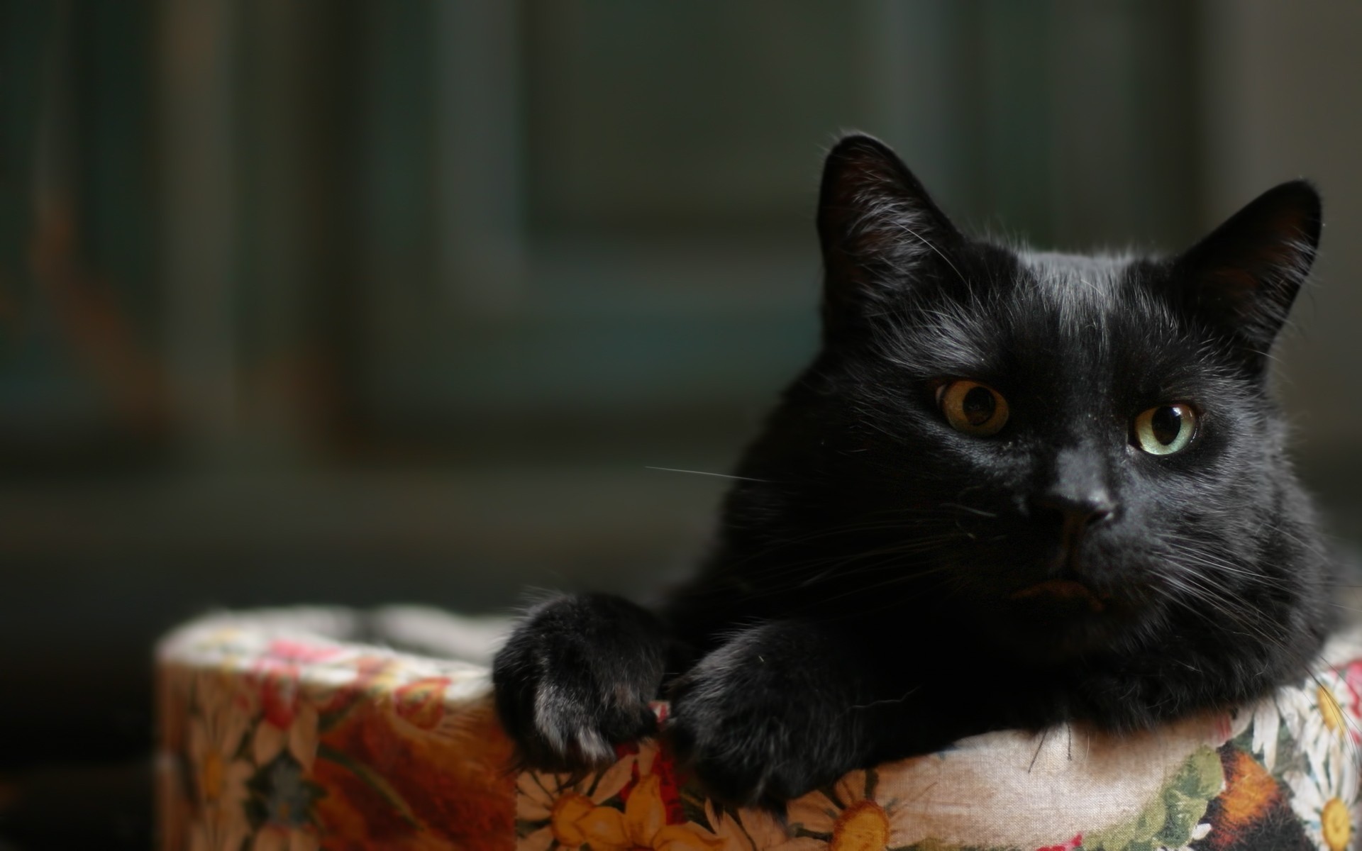 1920x1200 Черный кот на диване - 1920x1200