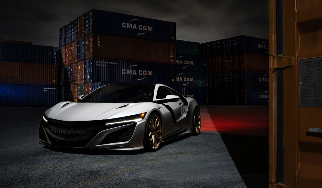 2017 Acura NSX HRE белого цвета на фоне контейнеров ночью 4k обои - 1024x600