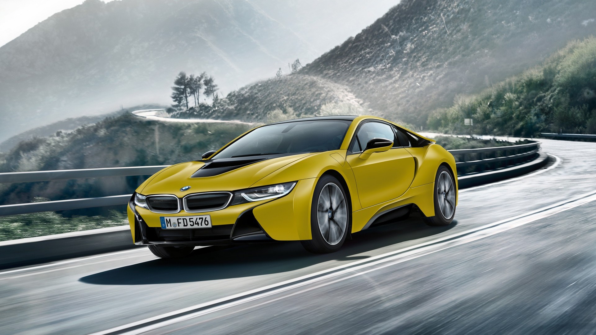 2017 BMW i8 Frozen Yellow Edition на горной дороге обои HD - 1920x1080 (1080p)