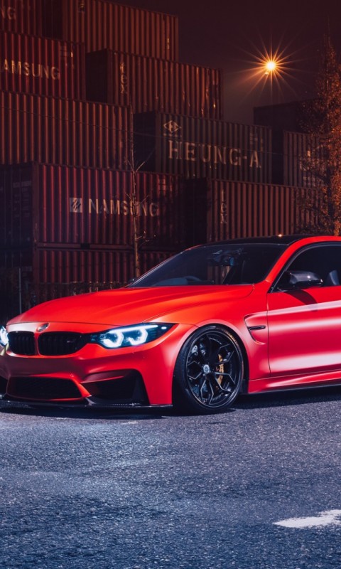 BMW M4 красный авто обои - 480x800