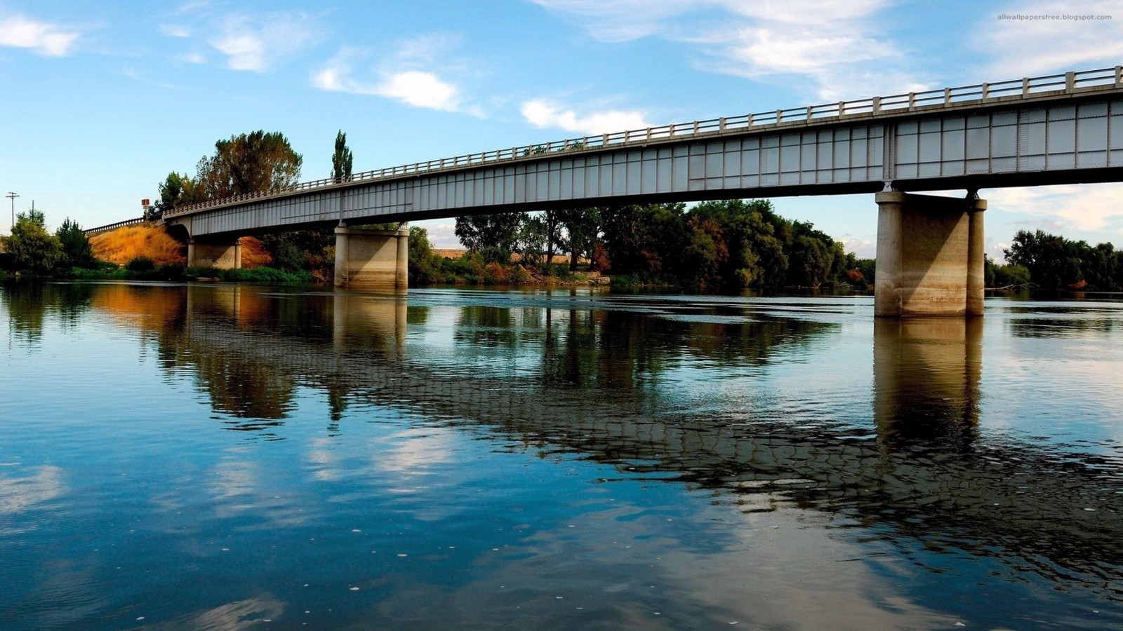 HD обои Спокойная река под мостом - 1600x900