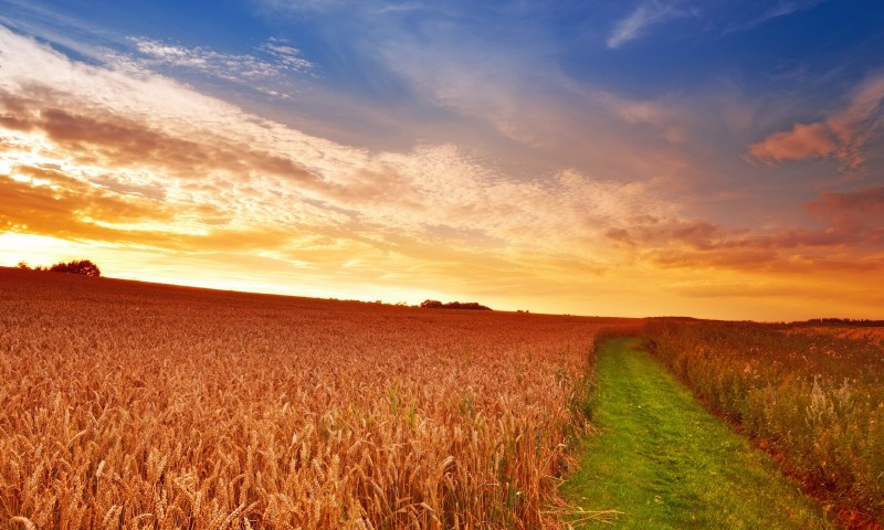 HD обои с изображением поля и заката - 800x480