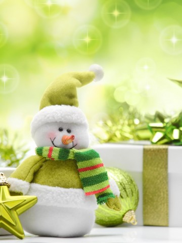 Веселые новогодний снеговик на зеленом фоне - 360x480