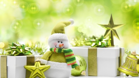 Веселые новогодний снеговик на зеленом фоне - 480x272 PSP