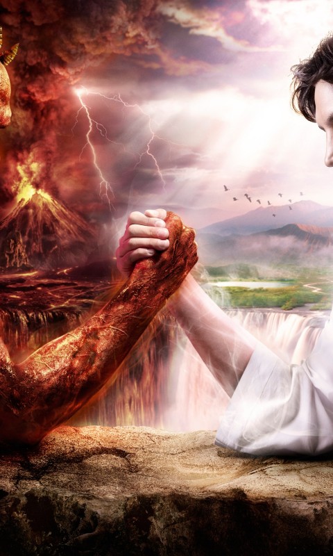 Дьявол против Бога, добро против зла, фэнтези картинки, hd - 480x800