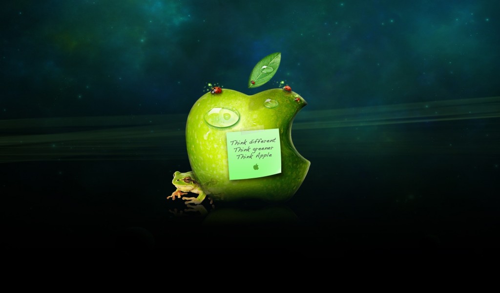 Зеленое яблоко с запиской обои на рабочий стол - 1024x600