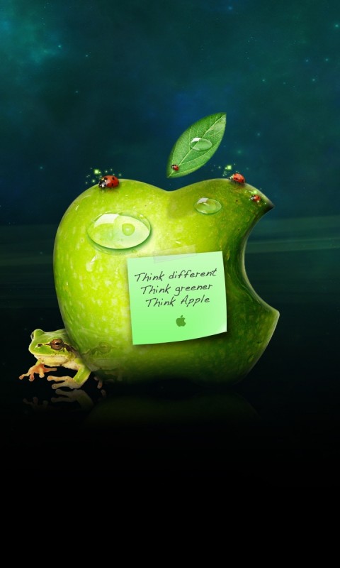Зеленое яблоко с запиской обои на рабочий стол - 480x800