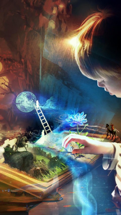 Книга воображений, фэнтези, ребенок, сказка, картинки, заставки - 480x854