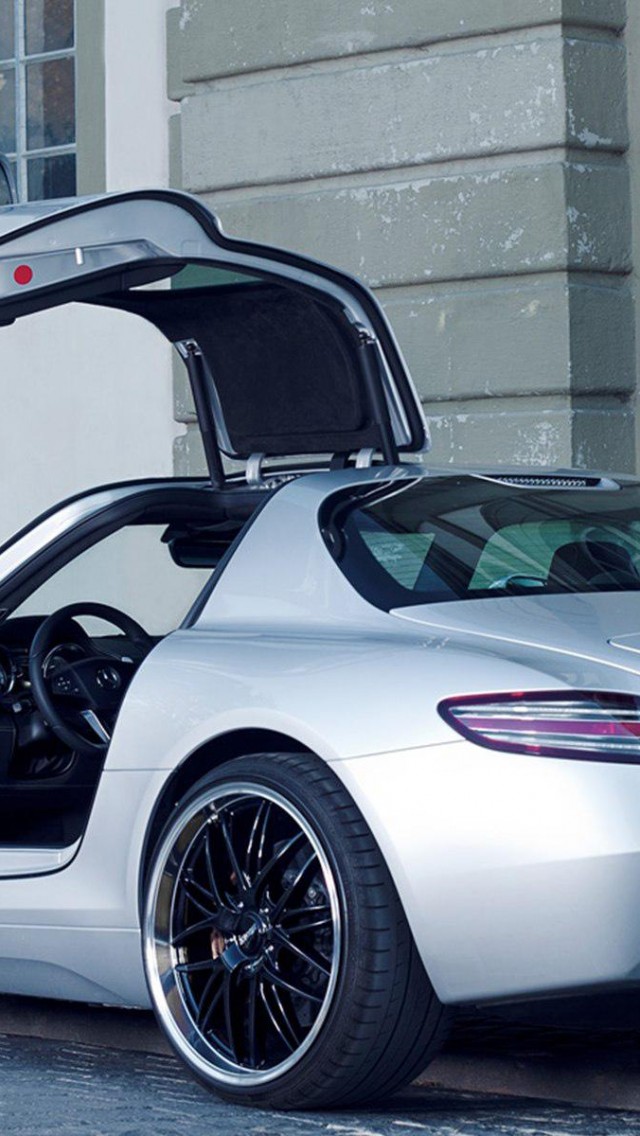 Красивая девушка модель у Mercedes SLS AMG обои на стол - iPhone 5/5S (& iPod)