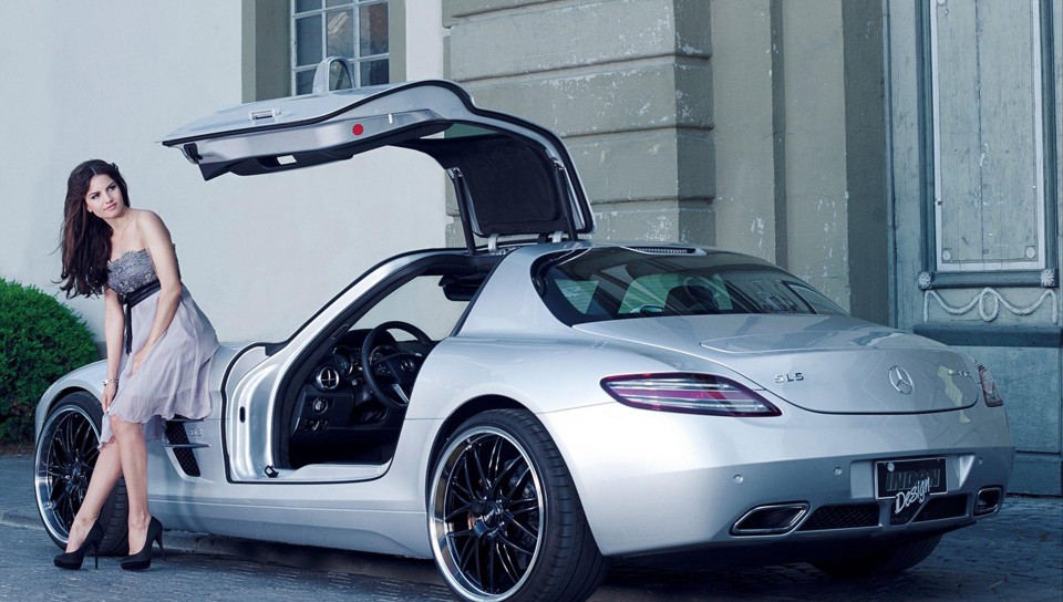Красивая девушка модель у Mercedes SLS AMG обои на стол - 960x544 PS Vita