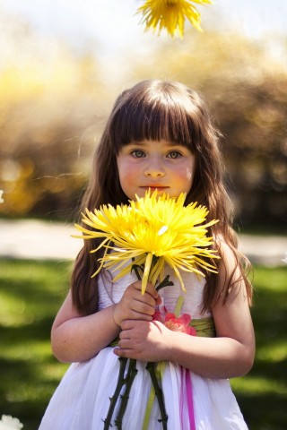 Маленькая девочка с желтым цветком обои - Older iPhone & iPod