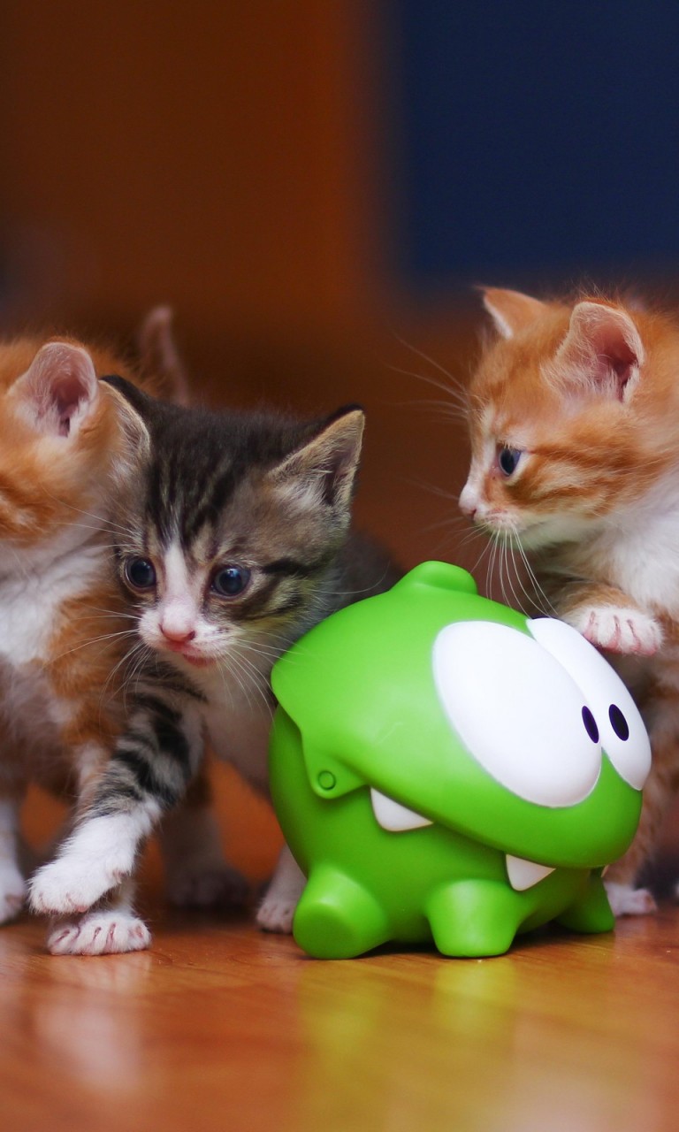 Маленькие котята играют с зеленой игрушкой обои hd для рабочего стола - 768x1280