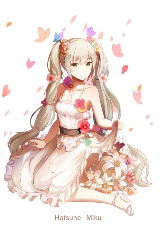 Мику Хацунэ, белый фон, платье, Мику Хацуне, певица, Vocaloid, hatsune miku, девушка, аниме обои - Older iPhone & iPod
