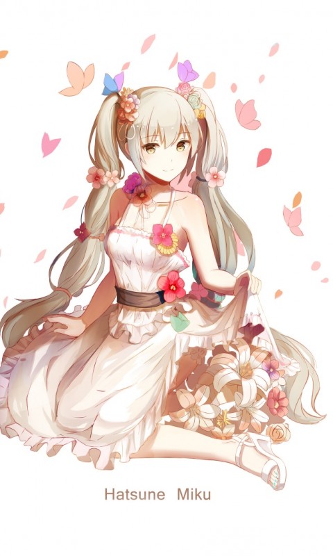 Мику Хацунэ, белый фон, платье, Мику Хацуне, певица, Vocaloid, hatsune miku, девушка, аниме обои - 480x800