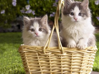 Милые котята в корзинке обои - 320x240