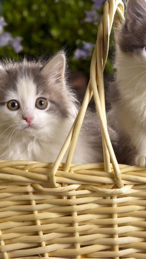Милые котята в корзинке обои - 480x854