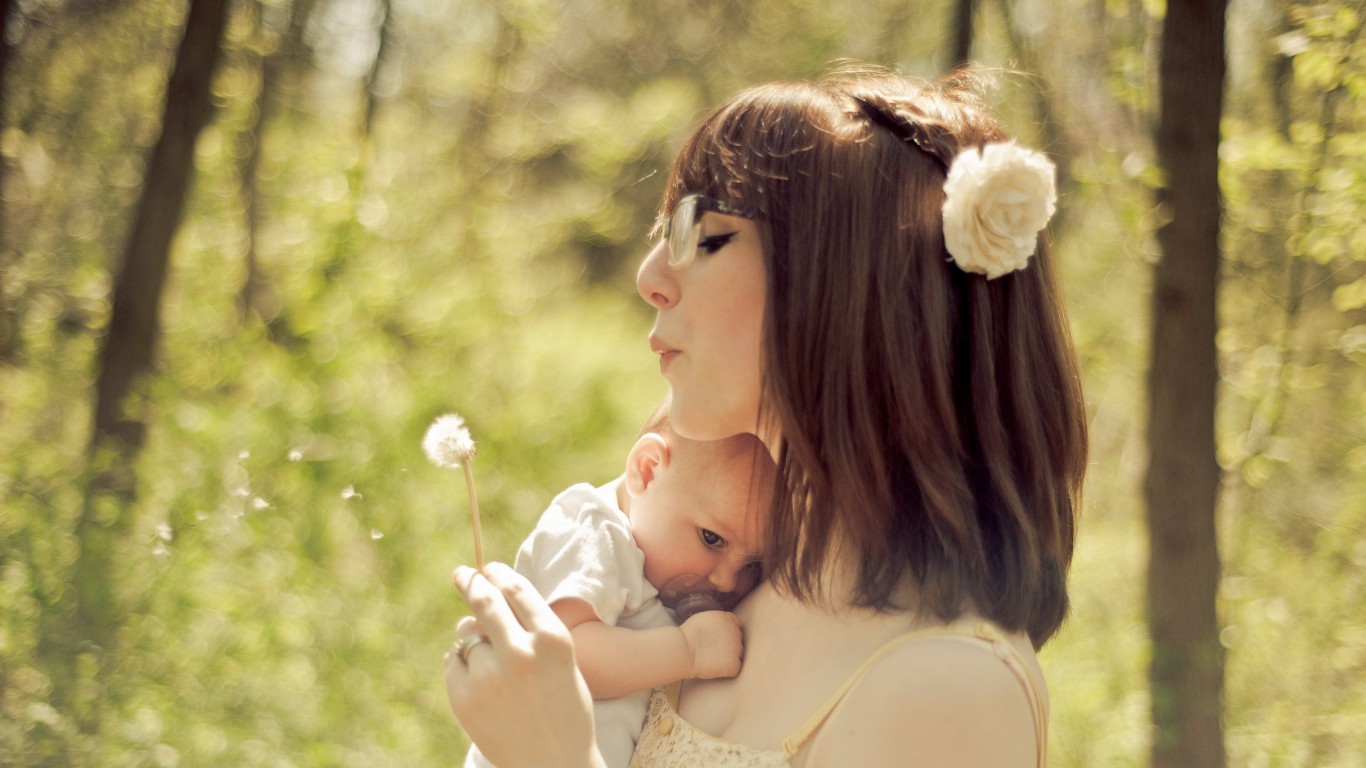 Молодая мамочка с младенцем на руках - 1366x768