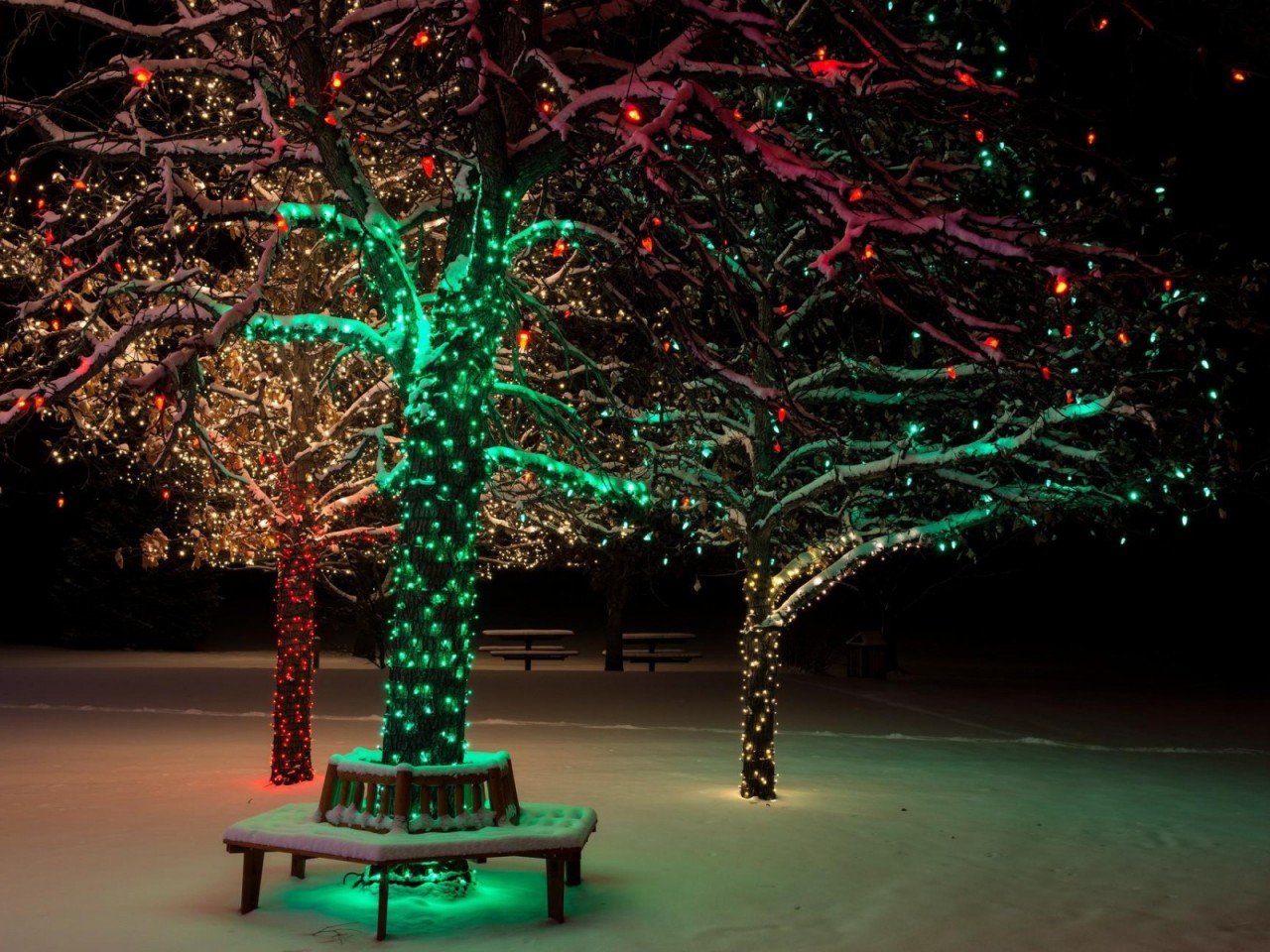 Новогоднее дерево, снег, зима, праздник, огни, фоны, заставки - 1280x960
