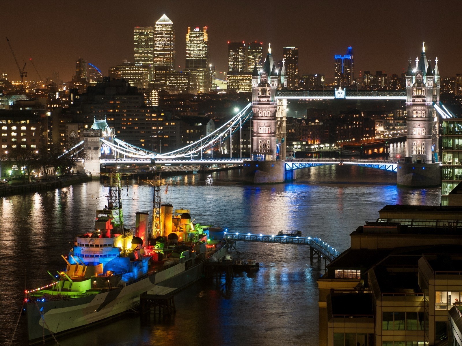 Ночной Лондон и его Тауэрский мост - 1600x1200