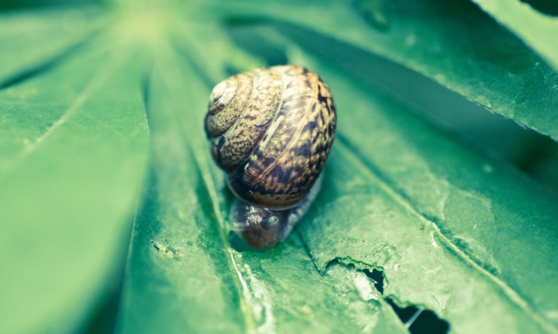 Обои улитки на листке зелени - 800x480
