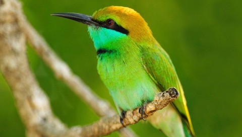 Обои ярко зеленой птички на ветке - 480x272 PSP