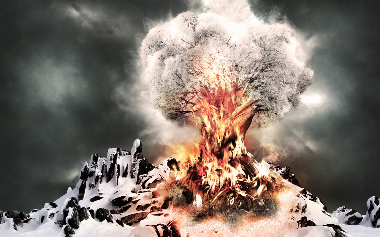 Огненное дерево на снежной горе абстрактные фоны HD - 1280x800