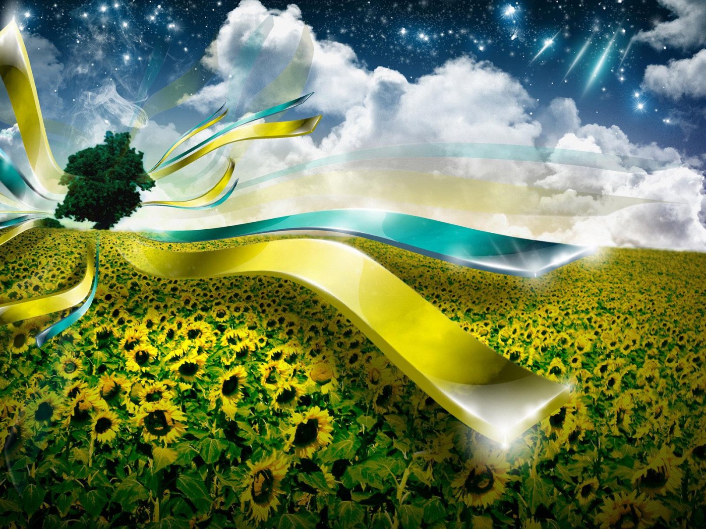 Пейзаж, поле, линия света, воображение, фоны, заставки - 1400x1050