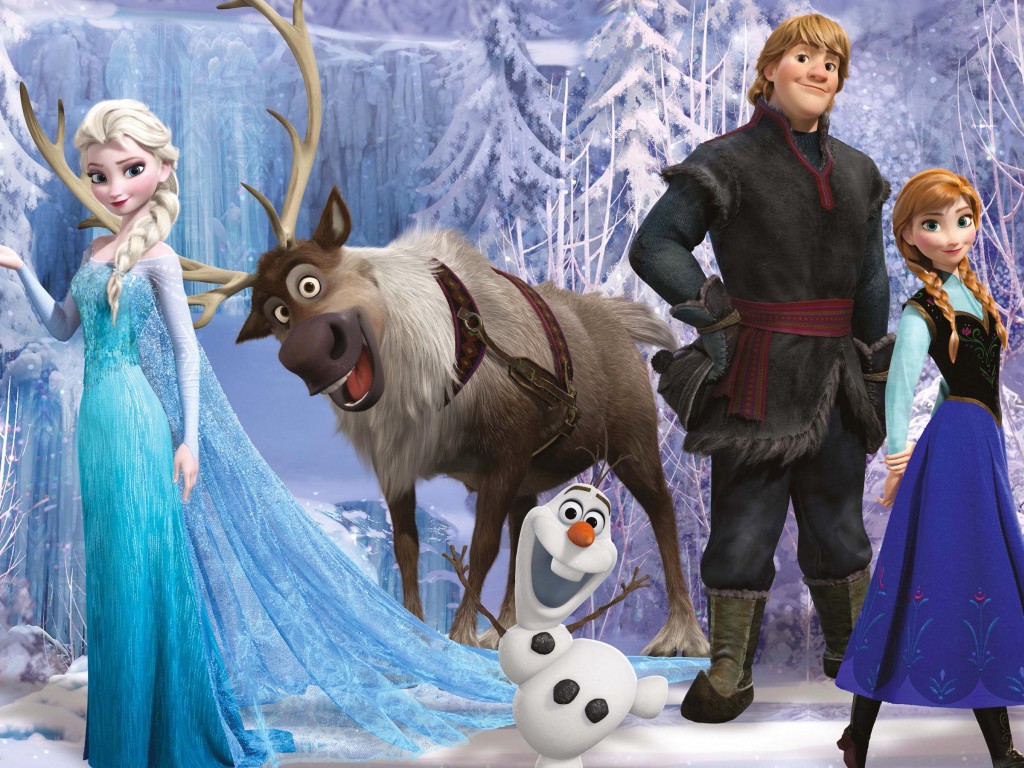 Положительные герои мультфильма Холодное сердце на снежном фоне - 1024x768