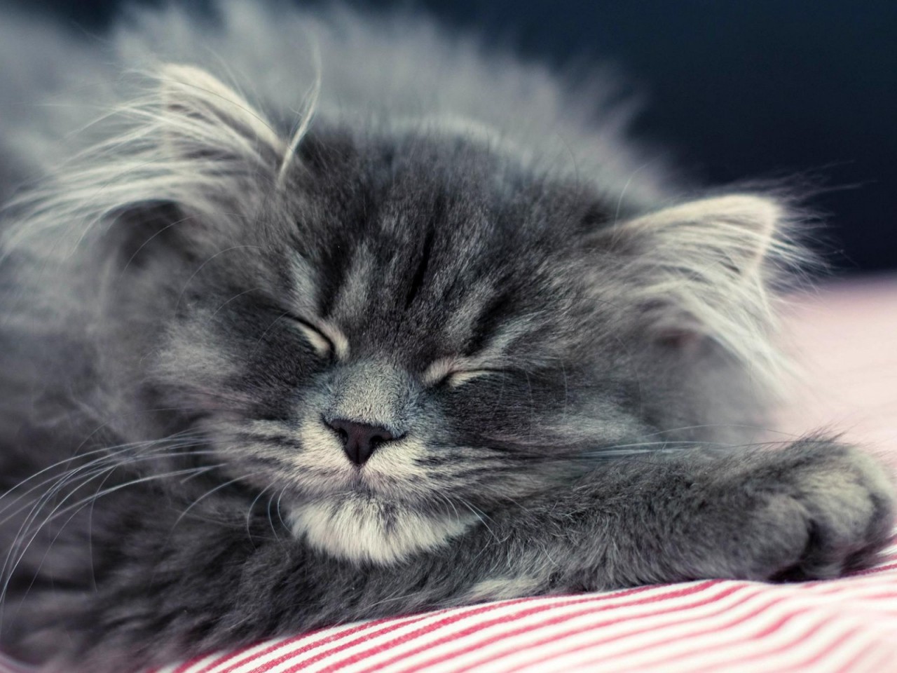 Пушистая кошка спит широкоформатные обои hd бесплатно - 1280x960