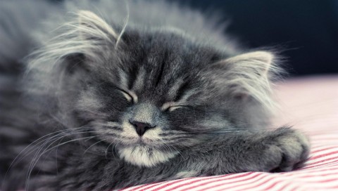 Пушистая кошка спит широкоформатные обои hd бесплатно - 480x272 PSP